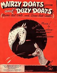 I dreamt with the children’s nursery rhyme “Mairzy Doats” as the song track throughout my dream: Mairzy doats and dozy doat and liddle lamzy divy. Akiddly divy do, wouldn’t you?”